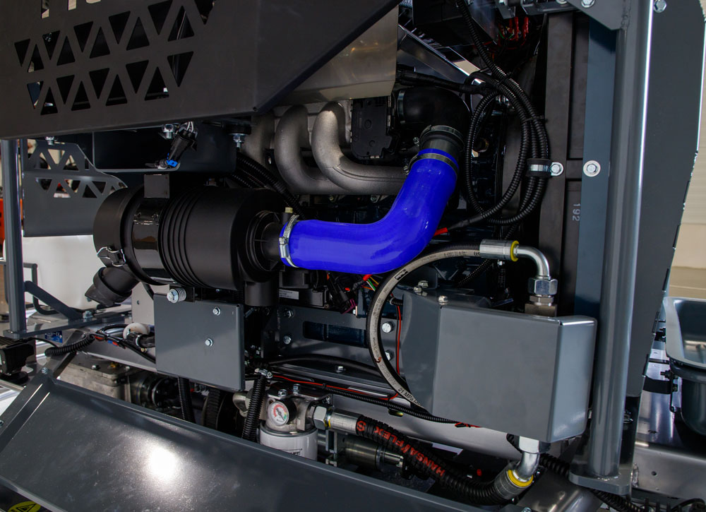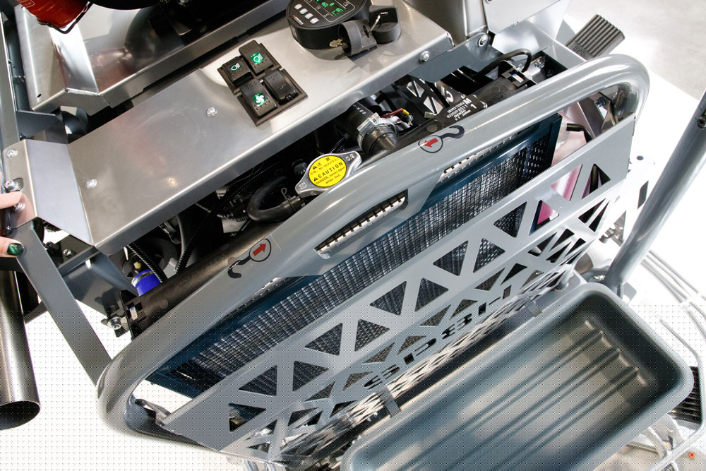 Protective shield between lift pockets reduces concrete splashing and protects the CVT and driveline from debris and impact. Improved fuel system eliminates capmounted float failures, reduces water intrusion, and improves fuel-level accuracy.