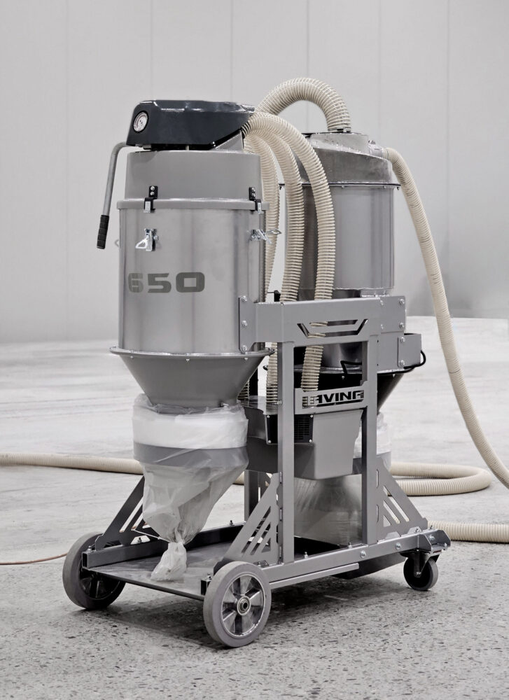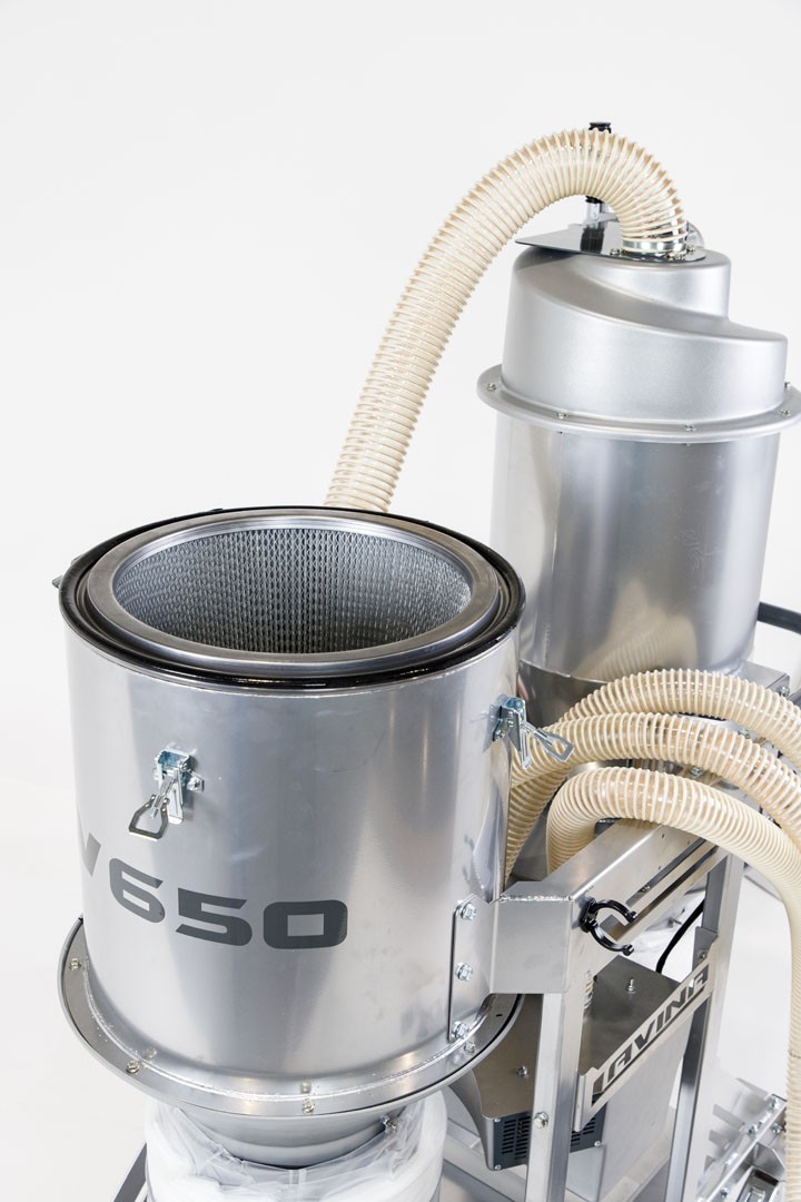 LV650 is a mid-size electric vacuum with integrated pre-separator, suitable for use with 25″/30″ floor grinders. It is offered in 115V and 220V.